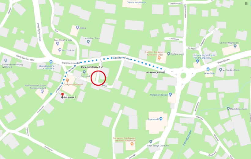 Haltestelle: Wattenwil Bären oder Wattenwil Postgasse (2 Minuten Fussweg)